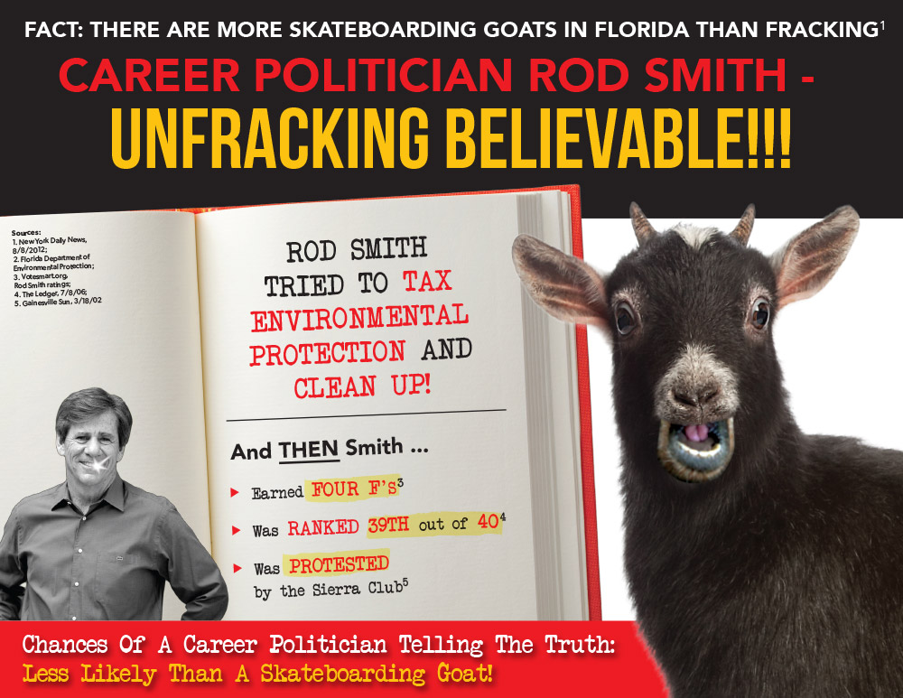 There is no fracking in Florida. None. ZERO. But career politician Rod Smith is lying about fracking over and over to hide is own shameful environmental record.